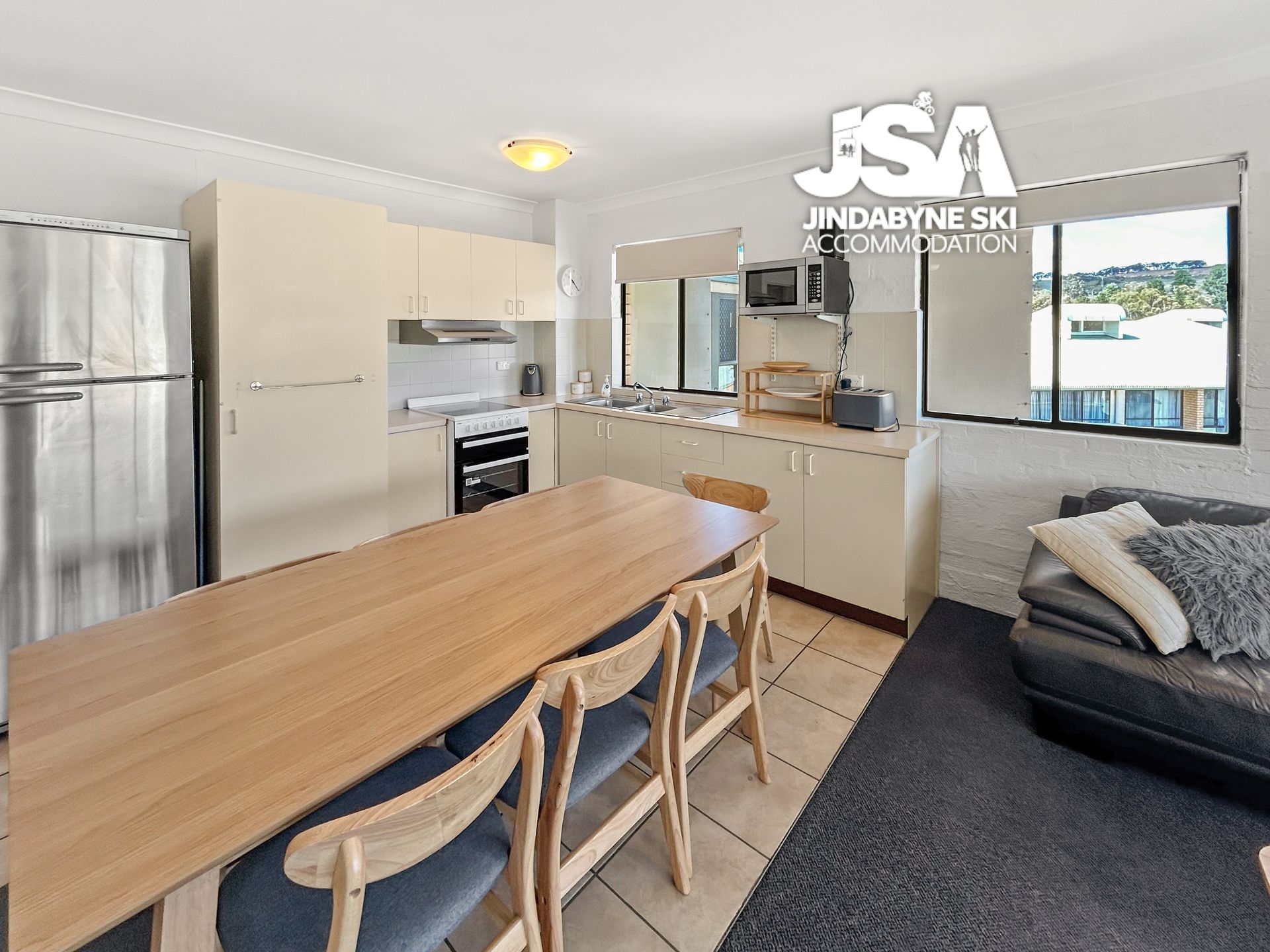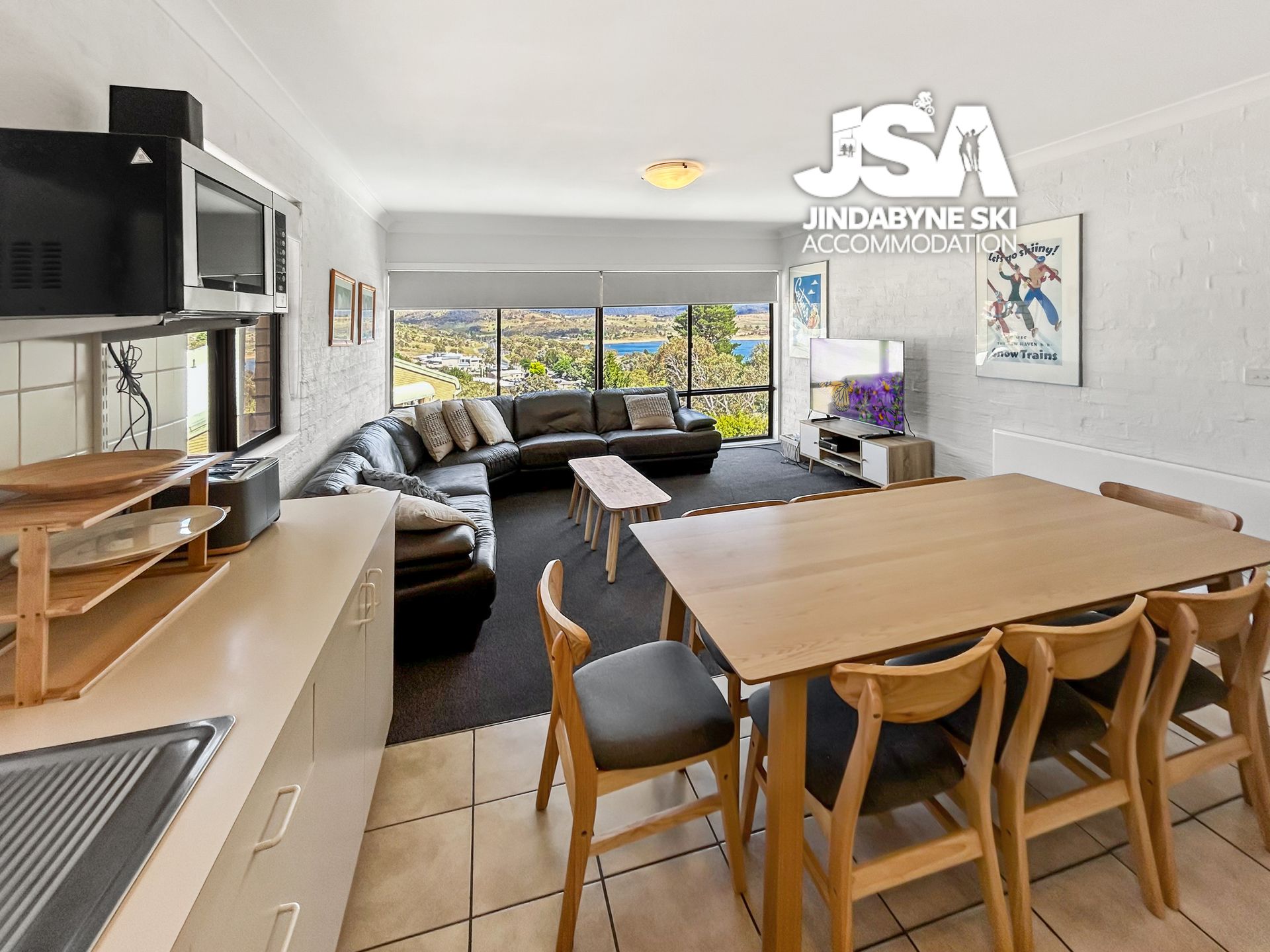 Additional amenities include a separate toilet with laundry facilities and allocated parking for two cars. Alpine Mountain View is perfect for those seeking adventure and relaxation. Enjoy fishing, water skiing, and hiking in the summer, and take advantage of the prime location for skiing and snowboarding in the winter.