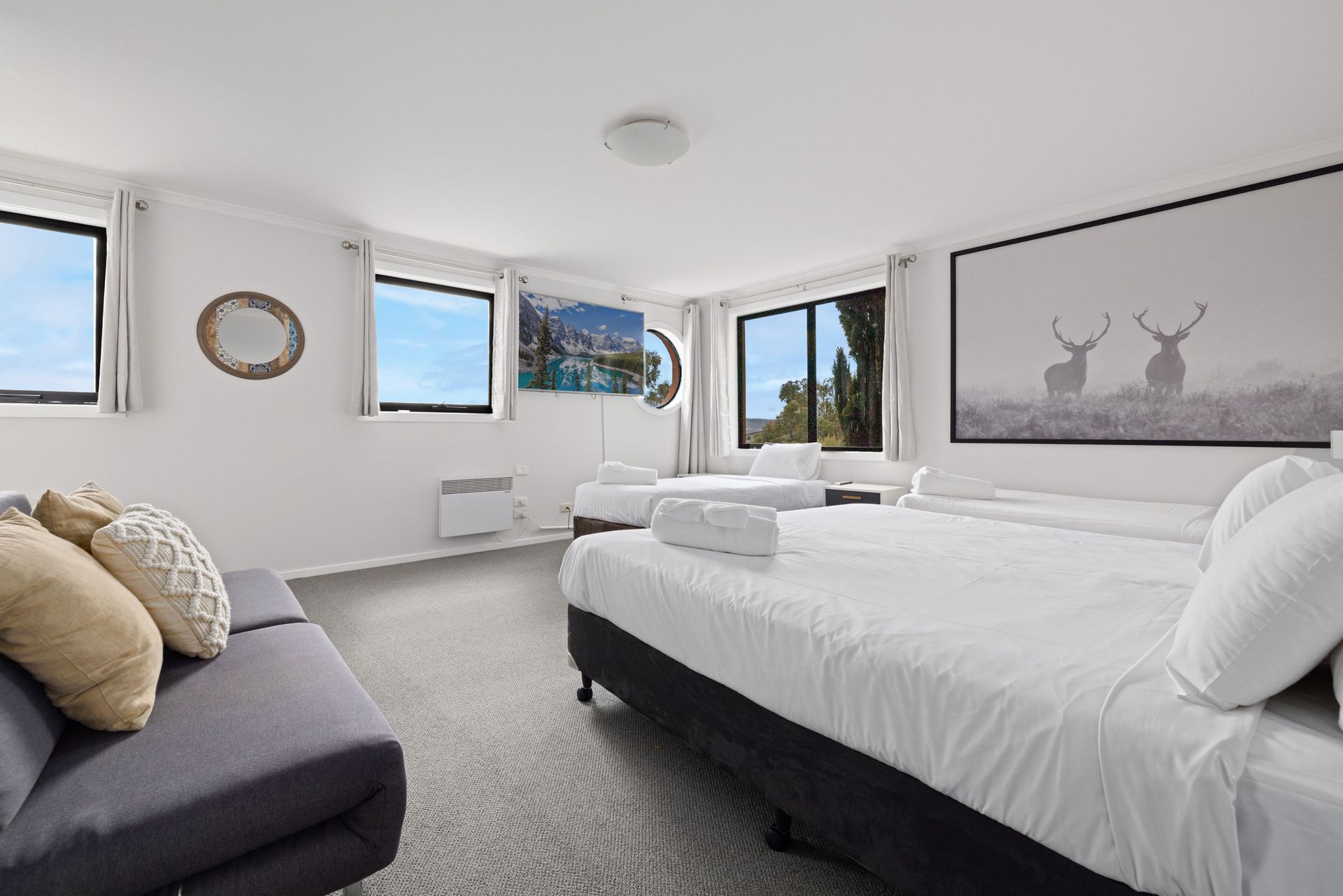 Upstairs Bedroom 1 x King Bed & 2 x Single Beds with ensuite