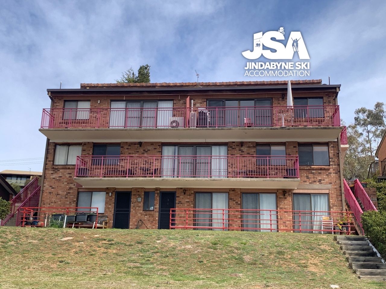 Layout: 1 set of external stairs, then all on one level.